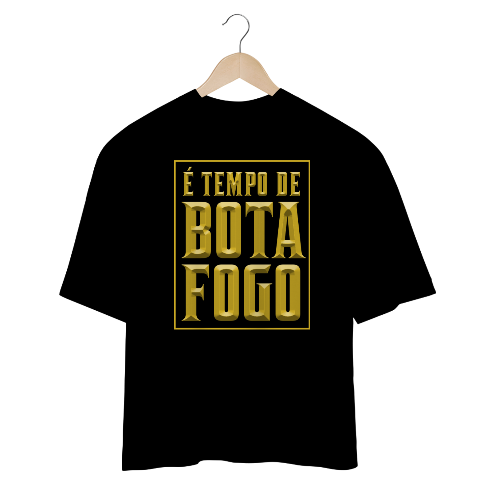 A oversized É Tempo de Botafogo é uma verdadeira declaração de paixão e amor pelo clube. Com um design simples e elegante, a frase é o destaque central da peça, expressando todo o sentimento de quem vive intensamente a relação com o time. A tipografia usada para a mensagem transmite emoção e força, refletindo a ligação inquebrável entre o torcedor e o Botafogo.
